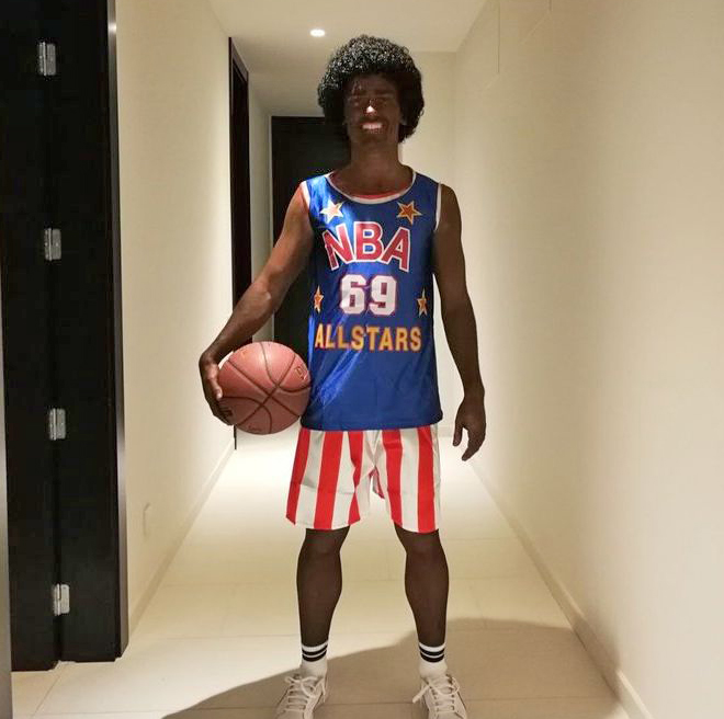 ''Grizi'' a publié des images de lui, déguisé en joueur des Harlem Globetrotters et plutôt que de s'en tenir au maillot et au short de l'équipe de basket-ball, il s'est couvert le visage et le corps de maquillage noir et une perruque afro complétait son look.