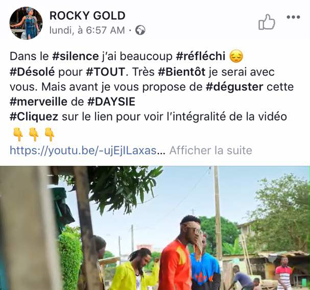 Bien avant ses aveux, Rocky Gold avait fait des publications pour exprimer ses regrets et en a profité pour annoncer son retour.